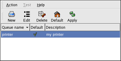 Clicking the Apply button saves any changes that you have made and restarts the printer daemon. The changes are not written to the configuration file until the printer daemon is restarted. Alternatively, you can choose Action => Apply.