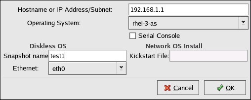 Hostname or IP Address/Subnet — Specify the hostname or IP address of a system to add it as a host for the diskless environment. Enter a subnet to specify a group of systems.